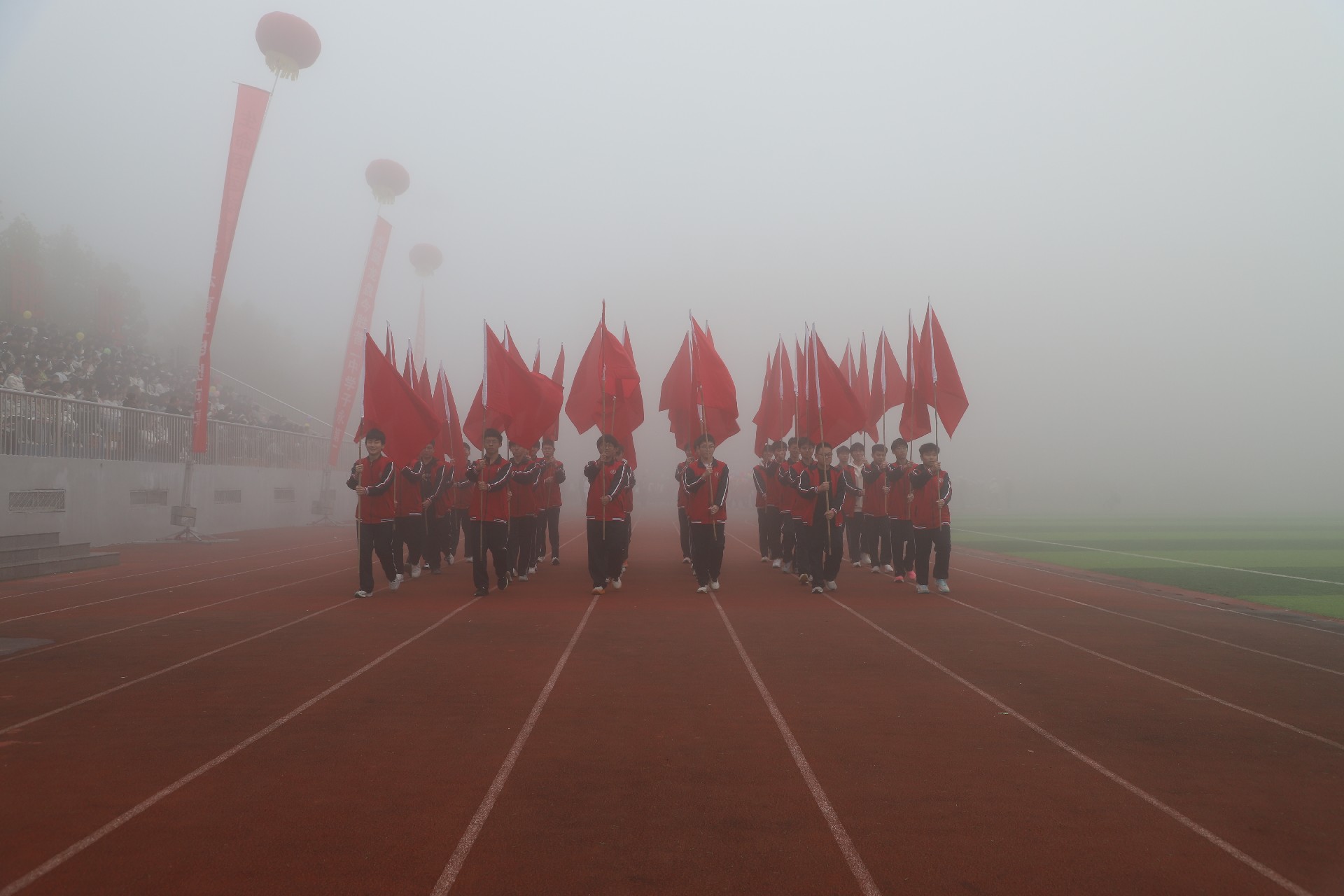 各方队就位后,国旗护卫队入场。伴随着雄壮激昂的《义勇军进行曲》,鲜艳的五星红旗冉冉升起。全场师生庄严肃立、奏唱国歌,向国旗行注目礼,爱国之情在每个人心中激荡。